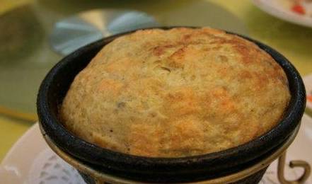 铁锅蛋是河南省很有特色的一道名菜,属于豫菜系。其味美,色泽红黄,油润明亮,鲜嫩软香,回味无穷。用特制的铁锅盖放火上烧红。鸡蛋打入碗内,搅匀,放入火腿丁、荸荠丁、虾子和海米、味精、料酒、盐水,铁锅放在小火上,将大油注入蛋浆中,并用勺慢慢搅动,防止蛋浆抓锅。待蛋浆八成熟时,用火钩挂住烧红的铁锅盖盖在铁锅上,利用盖子睥高温,将蛋浆烤凝结,暄起使蛋浆糨皮发亮,呈红黄色。