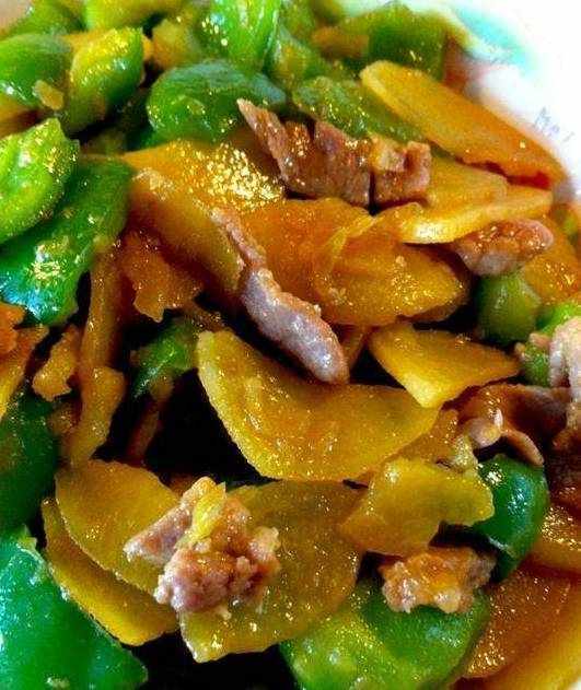 肉炒青椒土豆片是一道最最家常的家常菜。这个季节天气干燥,猪肉中的瘦肉有滋阴润燥的作用,对热病伤津、燥咳、便秘等疾病都有一定的治疗效果。吃饭饮食一定要注意荤素搭配。