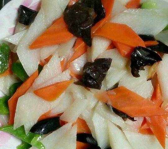 山药炒木耳是一道传统的家常菜了,这道菜脆嫩爽口,营养丰富。木耳有防止血栓及降低胆固醇的作用。山药具有滋养强壮,助消化,敛虚汗,止泻之功效。这个季节值得推荐的一道菜。