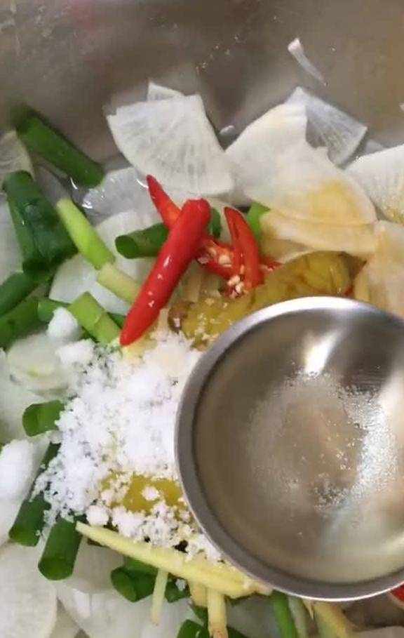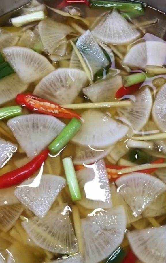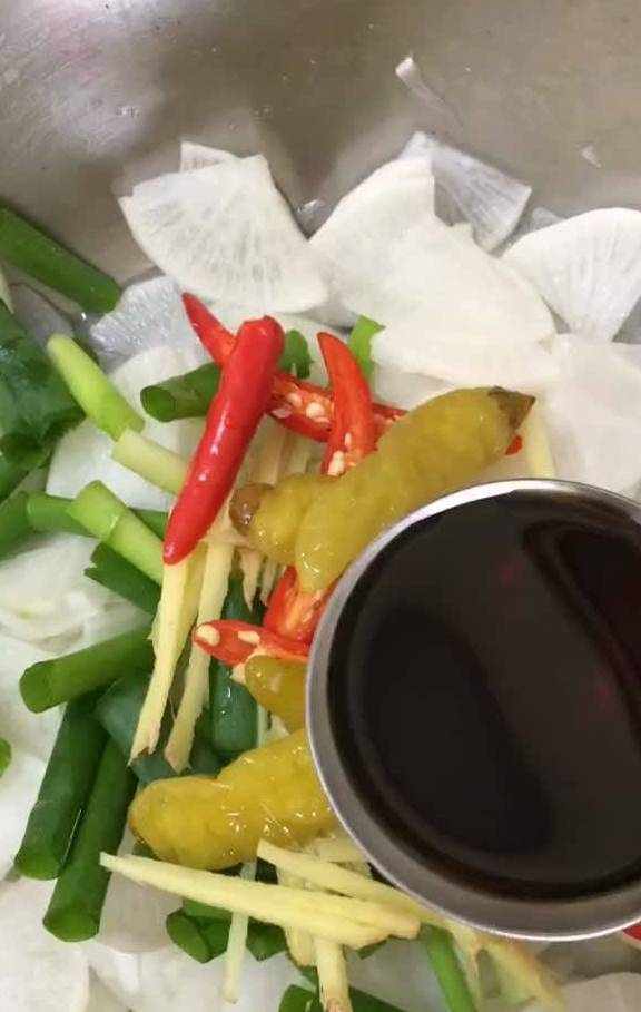 泡椒非常关键的一样东西,酸辣白萝卜好吃不好吃,味道美不美占了很重要的比重,存放越久的味道越香,家中常备点,用它泡鸡爪也是非常棒的。再放入一大勺的生抽,让它中和下辣味,增加点酱香味。