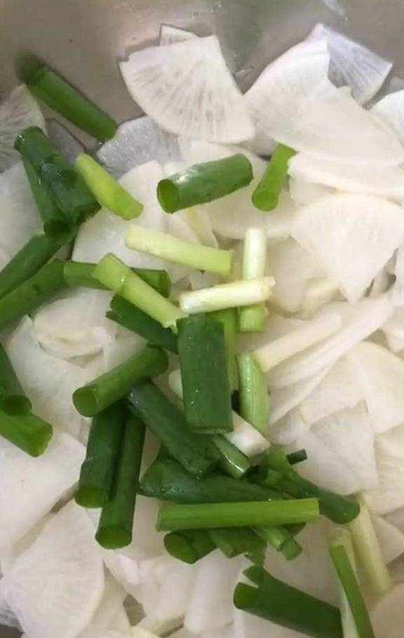 加入适量的葱段,可以切的长点,如上图所示,主要为了方便捞出。