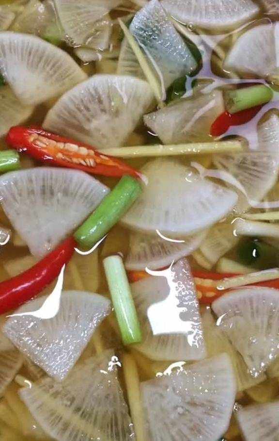盖上保鲜膜,放入冰箱冷藏一夜即可,一次的量不用做太多,想吃的时候再弄,做一回吃上三五天都不会变质。酸辣萝卜,鲜酸辣脆,没有胃口的时候用它下饭超级棒!