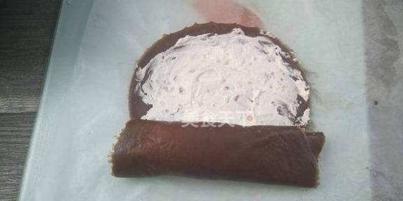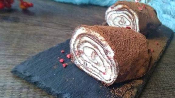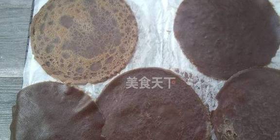 小贴士:面糊搅匀要过筛,一定要过筛至少3遍以上,不然煎出的饼皮不会平整。煎饼必须是小火最小的。补充可可粉我用了10克。一般3-5张薄饼就能做一个毛巾卷蛋糕。