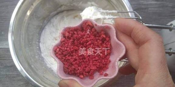 鸡蛋3个、牛奶100g、黄油30g、低筋粉65g、白糖40g、淡奶油160g、冻干草莓碎1匙、可可粉10g。