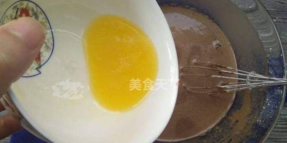 6.加入融化成液体的黄油继续搅匀成饼糊。