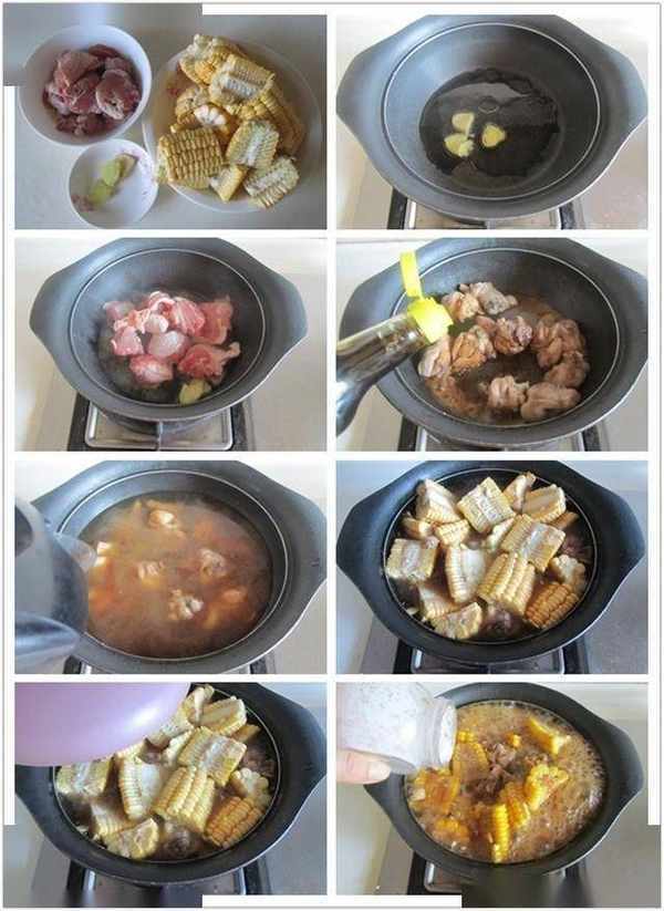 制作:1. 准备好食材;2. 烧热锅放入适量的油, 放入少许姜片进去煸炒炒出香味;3. 将准备好的鸡腿进去煸炒至鸡皮微微出油; 4. 烹入少许料酒和酱油进去煸炒; 5. 加入没过食材一半的水进锅大火煮开; 6. 放入准备好的玉米块进去煮;7. 继续炖煮十分钟; 8. 最后加入少许盐调味,大火收汁即可。