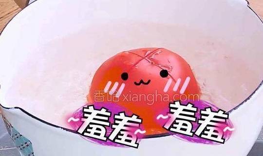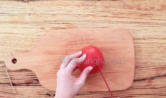 2.先在番茄面上用刀划一个十字