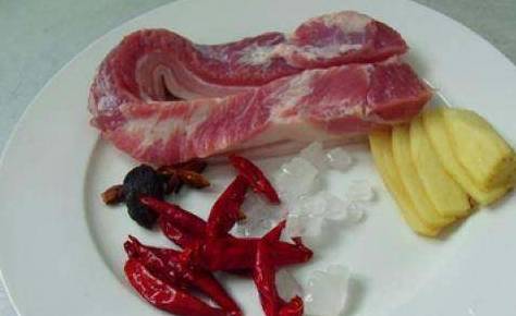 五花肉500克、姜5片、草果1个、冰糖适量、八角8颗、盐1茶匙、老抽三分之一茶匙、生抽适量、料酒1汤匙、味精适量