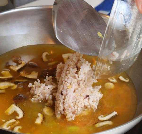 汤汁煮滚之后再放入白饭。