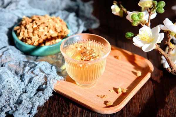 做法:枇杷叶洗净;陈皮洗净,撕成条。将枇杷叶和陈皮放入砂锅中,加适量水,大火煮沸后转小火煲15分钟,待茶晾至微温,加蜂蜜调味即可。