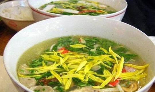 蒙自菊花过桥米线:是不是感觉很奇怪,米线里还可以放入菊花?其实蒙自菊花过桥米线的秘诀其实在于汤底,各家有各家的熬制方法,也各有各的味道。开吃时,在碗中放入不同的食料,最后放入可食用的菊花,既能吃有增添了几分美观,真正色香味俱全。