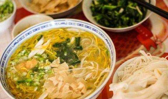 蘸水米线:这是一种比较清淡的吃法也是一种药膳没事。当然,如果想吃辣椒也是可以放的。里面放了大量的蔬菜,含有大量的营养,在享受美味的时候也不忘自身的营养,另外还有补血、护肝、养胃的食补功效。