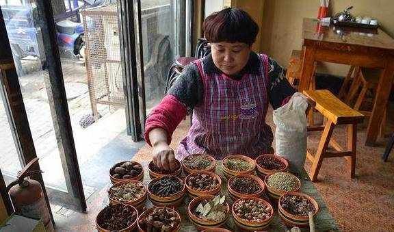 张大姐的父亲告诉他们,做吃的东西用料马虎不得,顾客里面也有“专家”,你用的东西好坏,人家自然能品尝得出来,坚持用好东西,口碑自然就好,生意会越做越好。图为张大姐正在装卤料,据她说要放桂皮、八角、丁香、肉蔻、香叶等将近三十种料。