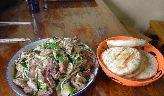 在店门口的一侧,放在烤烧饼的炉子,这样顾客就可以吃到最热乎的烧饼,烧饼中间是空的,有人喜欢把肉夹在里面品尝,也有人喜欢像吃馒头一样,来一口肉,再咬一嘴烧饼,反正无论怎么吃,这都是绝美的搭配。