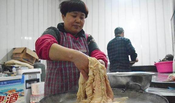 阳春三月,在河南禹州神垕古镇上一家卤肉老店里,今年43岁的张秋丽正在厨房里收拾猪大肠,她和丈夫一起开这家卤肉店多年,卤肉的手艺是祖传的,她的父亲在多年前把手艺传给了她和弟弟,然后他们各自开店发展,由于用料上乘、手艺精湛,张大姐家的卤肉很受食客的欢迎。
