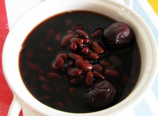 材料:50克黑豆、20枚红枣、适量的冰糖