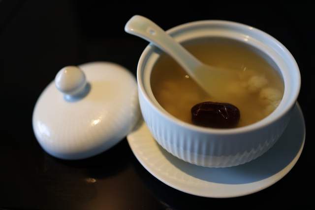 材料:20克银耳、适量的冰糖、枸杞子、桂圆肉