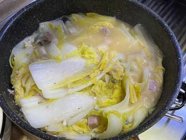 4、下入娃娃菜,煮3分钟左右,至娃娃菜熟透。