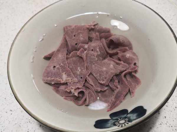1、猪肝用清水浸泡30分钟,泡出血水,然后洗净,切成薄片。