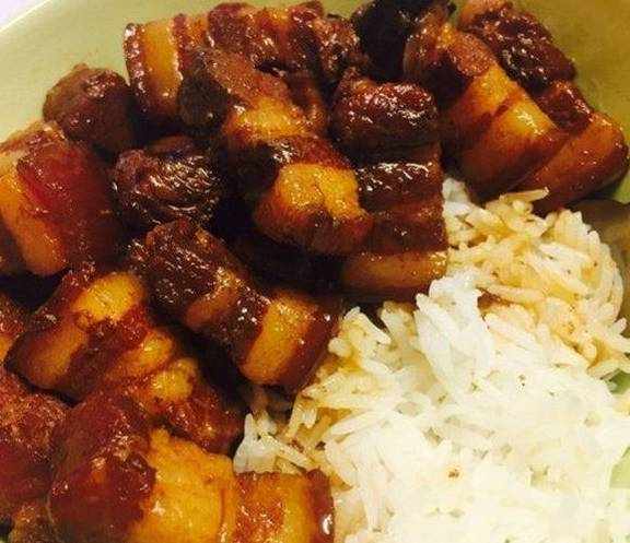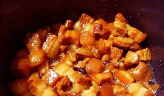 这个方法里关键就是使用了电饭煲,电饭煲不用人一直在旁边盯着,只要把盖子盖上,肉就会被一直炖煮直到软烂,是非常方便的厨房用具。另外,如果家里有八角香叶这些香料的话,在给五花肉上糖色的时候就可以下了,大概是两颗八角两片香叶这样,装入电饭煲前就可以把香料挑出来扔掉,以免香料的味道太重。