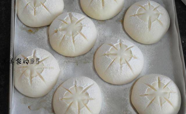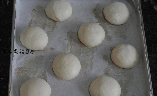 全部做好后,摆入铺了油纸的烤盘中进行二次发酵,大约20分钟就可以了,用手轻轻撮一下,面团能迅速回弹就可以了。二发也同样可以放入蒸锅里进行哦。