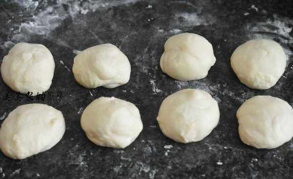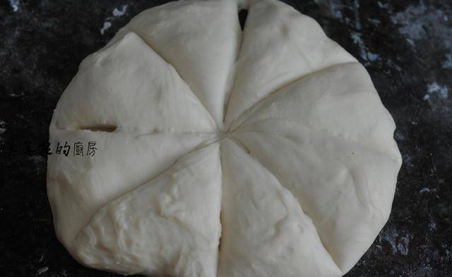 发酵好的面团取出来,稍微拍扁,分割成8份。