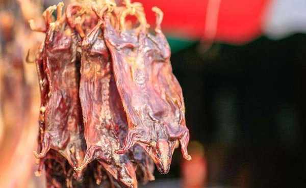 第三种:老鼠干。老鼠干是福建宁化的一种客家特色小吃,还是闽西八大干菜之一。相信很多人一看到老鼠干,就有一点反胃了。但是这种老鼠干其实主要是田鼠制作而成,是吃稻谷的,当地人们为了保护庄家不被田鼠吃掉,所以就将田鼠捕捉制作成了田鼠干。据说这种田鼠干还有补肾和治疗尿频的功效。