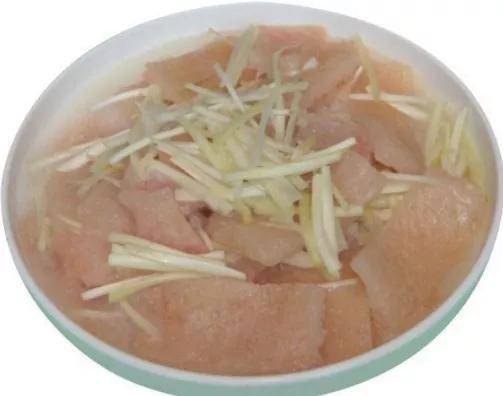 1.切肚片时要厚薄一致。用碱发制后,要反复用清水漂去碱味。