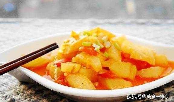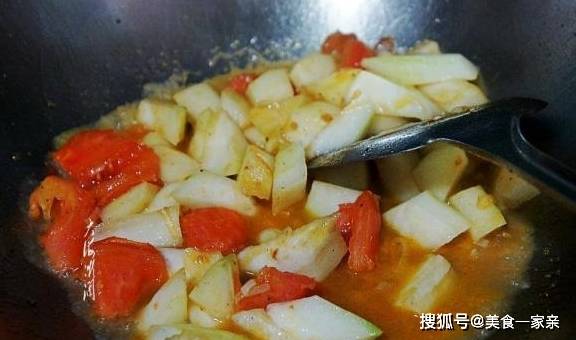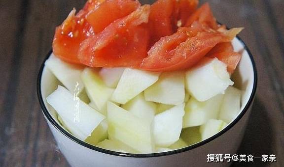这菜就是冬瓜,冬瓜是我们餐桌上常见的菜品之一,是瓜菜中不含脂肪的蔬果,被称为“减肥瓜”。冬瓜含有丰富的蛋白质,脂肪,脲酶,皂苷B族维生素等。富含人体所需的各种氨基酸,且膳食纤维含量很高,利水排湿,有瘦身美容的作用,因而十分受女士的欢迎。而且中医上认为,冬瓜味甘、淡、性凉,入肺、大肠、小肠、膀胱经。具有润肺生津、化痰止渴、利尿消肿、解毒排脓之功效,可见冬瓜确实是“上火”的克星。冬天吃它有利于清肺火,冬瓜也是百搭食材,与各种肉类搭配,不但解腻,而且比肉都香,煲汤及各类甜品都有它的身影,与西红柿搭配,这色彩真是吸人眼球,看着就流口水,出锅加点红油,微辣的口感,开胃下饭,我一人都能吃一盘,常吃想不瘦都难。