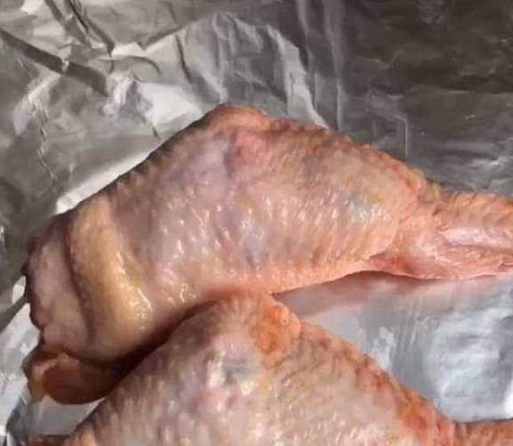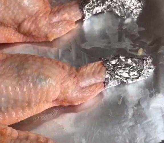 再用锡纸给包鸡翅尖,因为鸡翅尖比较小,容易烧焦,所以用锡纸包起来。