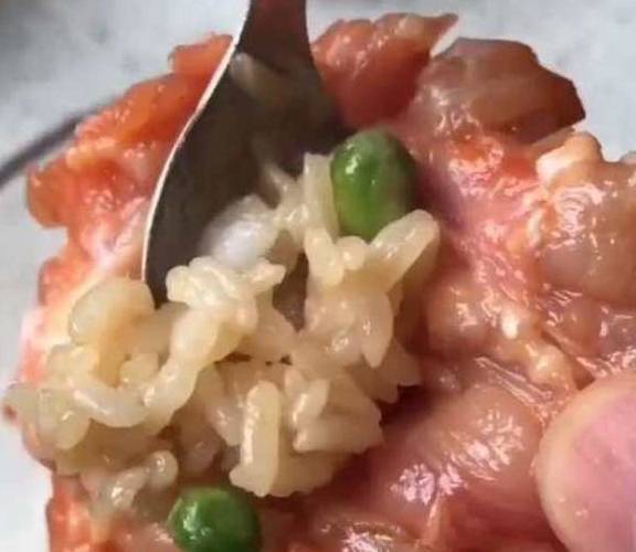 把炒好的米饭塞入鸡翅里面,再把口给封好,一个个鸡翅给这么做好。