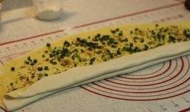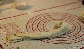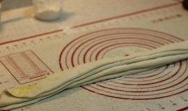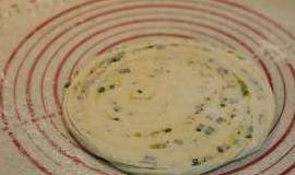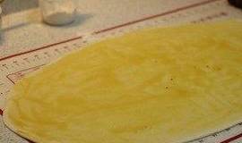 面团擀成长方形,抹上油酥,均匀的撒上一层盐(稍微多点盐,一定要均匀的一层)