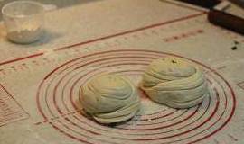 从一边开始往里盘,右边往里盘左边往外抻。快盘好后收尾处塞在饼底