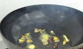 醒面的时候来做油酥。锅里热油,放入一部分葱花,两个大料
