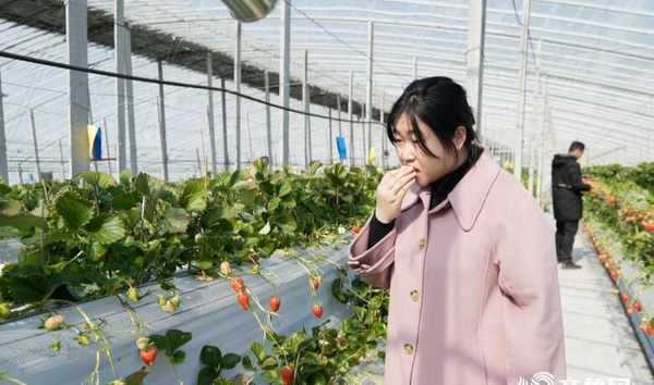 齐鲁网·闪电新闻2月27日讯 2月25日正值周末。在潍坊市潍城区的一座温室大棚里,人头攒动,十分热闹。一排排草莓红里透亮,散发着清香,甚是诱人。游客纷纷慕名而来,享受采摘的乐趣。