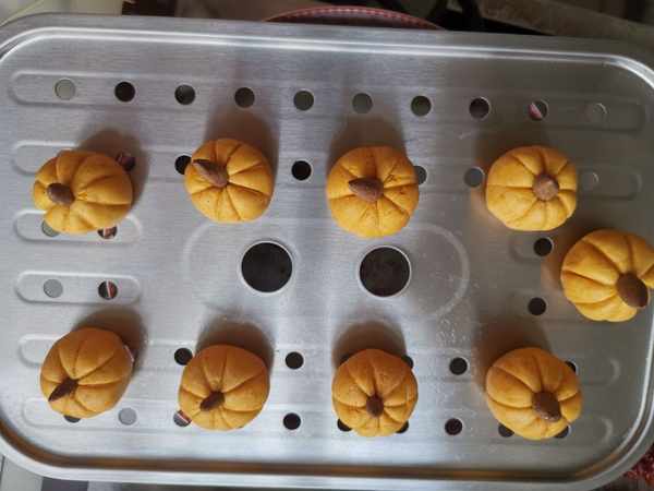 第五步:小南瓜就做好了,放到篦子上,大火蒸大約15分鐘。