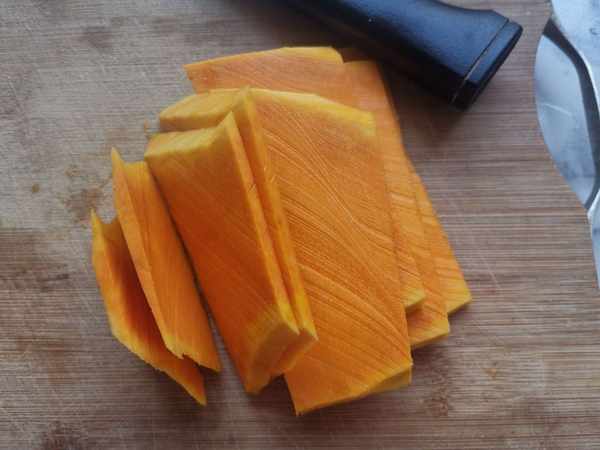 第一步:南瓜去皮,南瓜最好用這種黃皮皇瓤的南瓜,它的味道甜度大,口感面面的。南瓜中含有豐富的鋅,鋅能促進孩子的生長發育。而南瓜是富含β胡蘿蔔素的果蔬之一,這種營養素在人體內能轉化為維他命A,能增强眼睛在昏暗環境下的視野清晰度,對眼睛好處多多。南瓜上市的季節,別錯過了,不懂吃就可惜了。