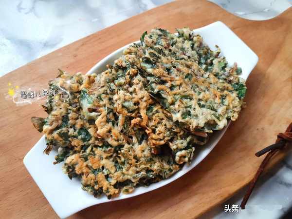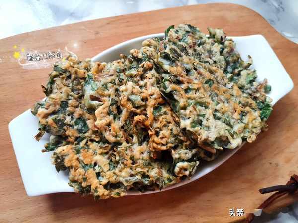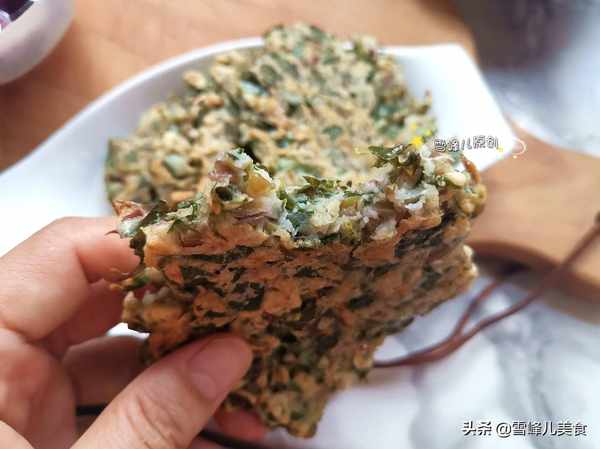 第八步:出鍋的馬齒莧雞蛋餅,外面酥脆裡面柔軟,特別好吃,當早餐真的太棒了,配上一碗紫薯羹或者粥就是很營養的一餐了。