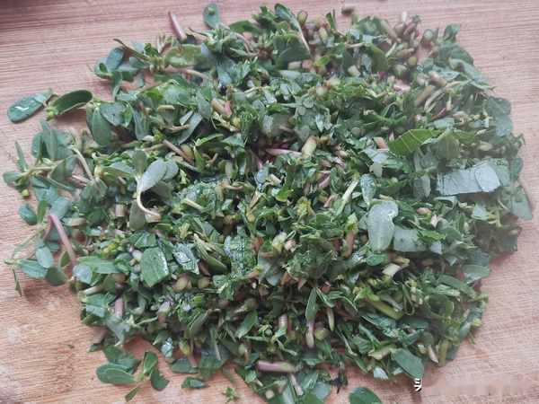 第三步:把洗淨的馬齒莧用刀切碎,不用汆水。
