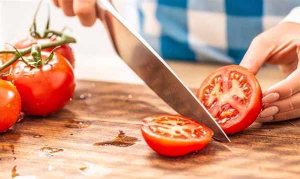 3.西红柿切成小片,洋葱和大蒜切碎备用。