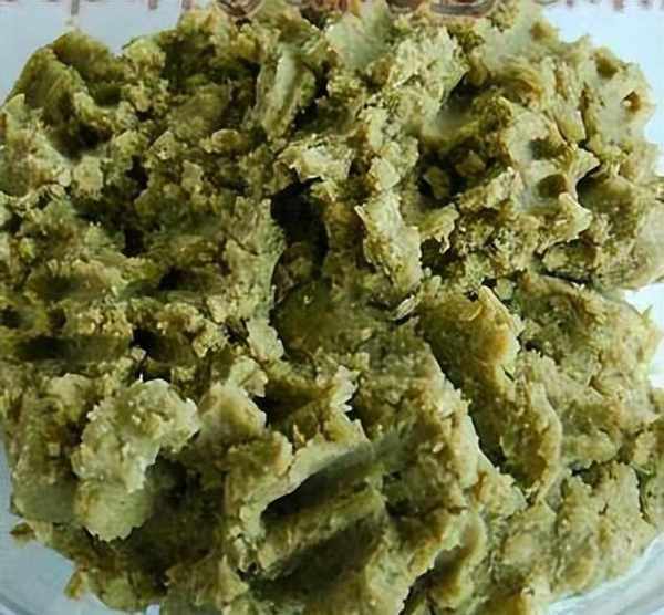 4、蒸好的四季豆用勺子捣成糊状备用。