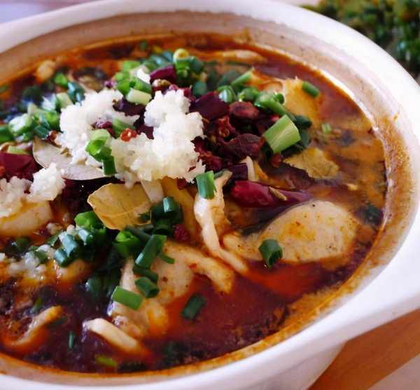 【材料】五花肉片250克,酸菜300克,各种火锅料1盒,嫩豆腐1块,大葱3根