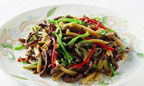 原料:五花肉、辣椒、豆腐干、盐、料酒、味精、六月鲜