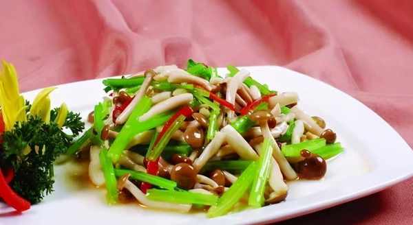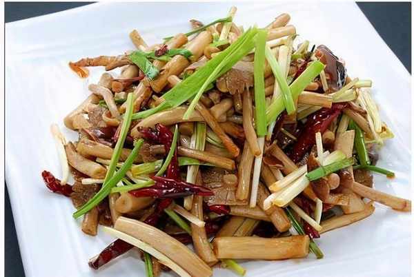 5.炒至茶树菇变软,加入盐和鸡精炒匀