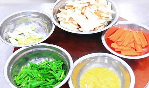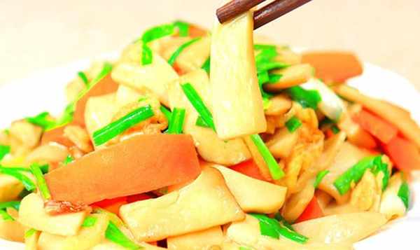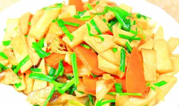 4.锅内重新烧热油,加入葱姜爆香,倒入焯好的杏鲍菇和胡萝卜快速炒匀,再加入鸡蛋和韭菜,加入2克盐,5克蚝油,混合生抽5克克香料,装盘品尝即可。