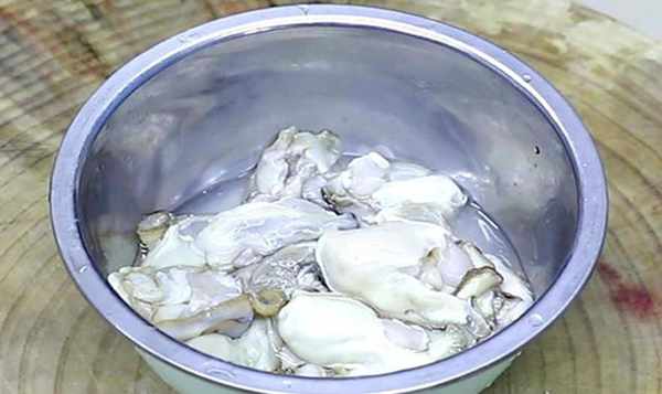 1.半只幼公鸡切小块,用清水冲洗干净,挤去水份;牡蛎肉用淀粉揉一下,然后冲洗干净;葱切段,姜切块,蒜切半开,一些泡软的香菇用带斜角的刀刃切片。