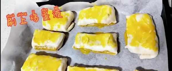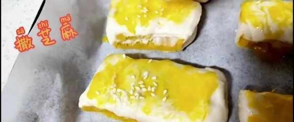 8放在烤盘上,刷上蛋液,撒上芝麻。