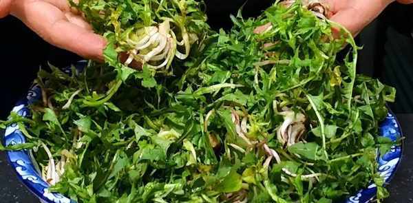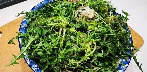 蒲公英全身都是宝。根可晒干,当茶叶饮用。叶子可以蒸着吃。它们可以和粥、汤或丸子一起吃。冷沙拉也很好吃。让我告诉你一个冷蒲公英沙拉的美味食谱:
