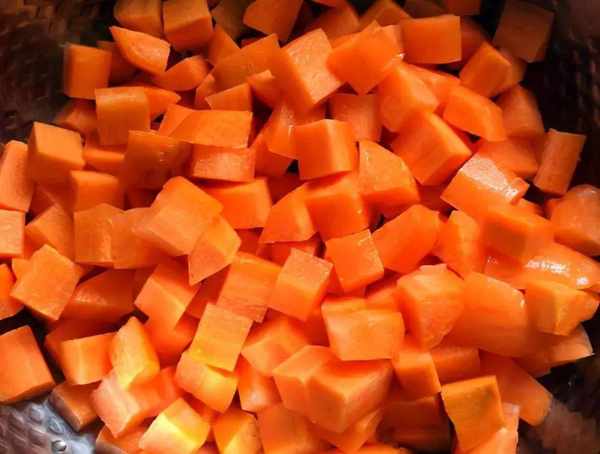 2、胡萝卜丁、辣椒丁均切得像青豌豆大小为佳,成品就显得更漂亮了,一些黄彩椒取代了青彩椒,看起来比较漂亮,当然,不舍得放手,就完全没有问题,猪肉末提前腌一会儿的目的就是为了吃起来更嫩滑和炒肉,可先用小火炒肉末,然后转中火,放入其他材料翻炒,不然肉末就会变成坨了;