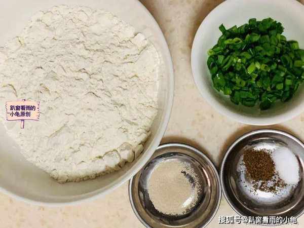 原料:小葱8棵,面粉300克,酵母粉2克,温水220克,食盐半小勺,花椒面半小勺,食用油适量。